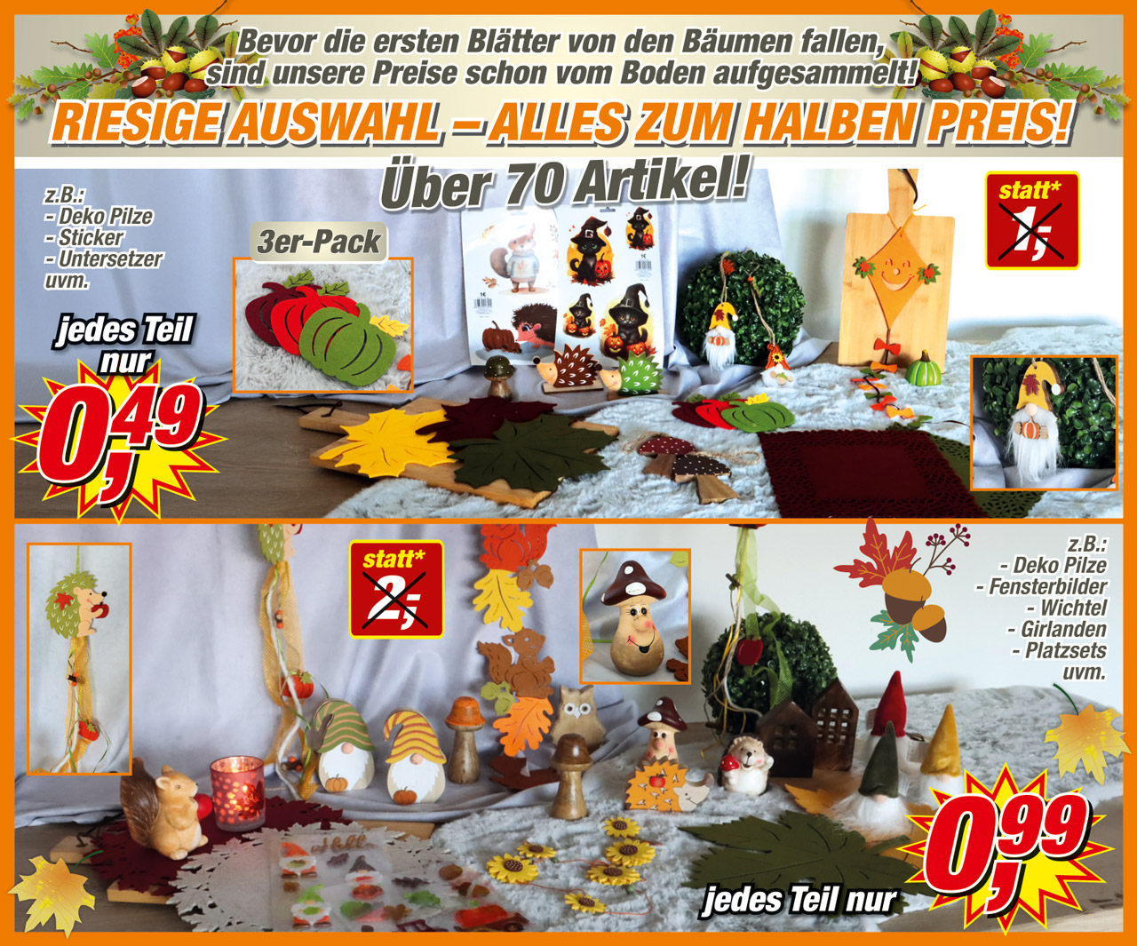 Der Preishammer zum Herbstbeginn!Großer Deko-Sonderposten – jetzt alles zum HALBEN Preis!